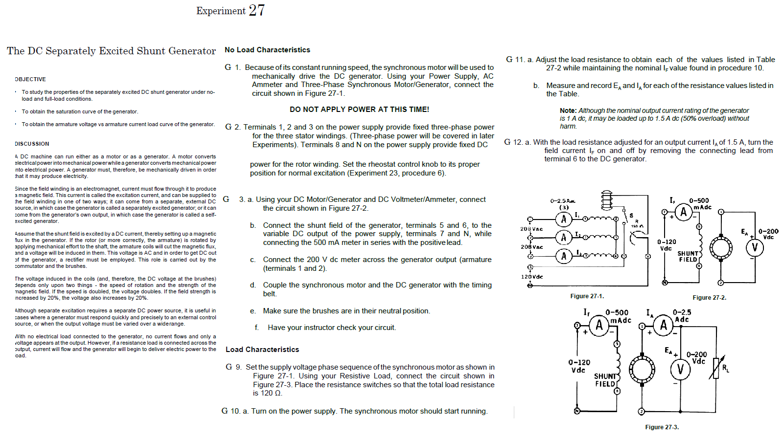 3 DC Shunt Generator Load Characteristics I. First enter the title of your paper into the appropriate box. EXPERIMENT N01 DC GENERATORS I.